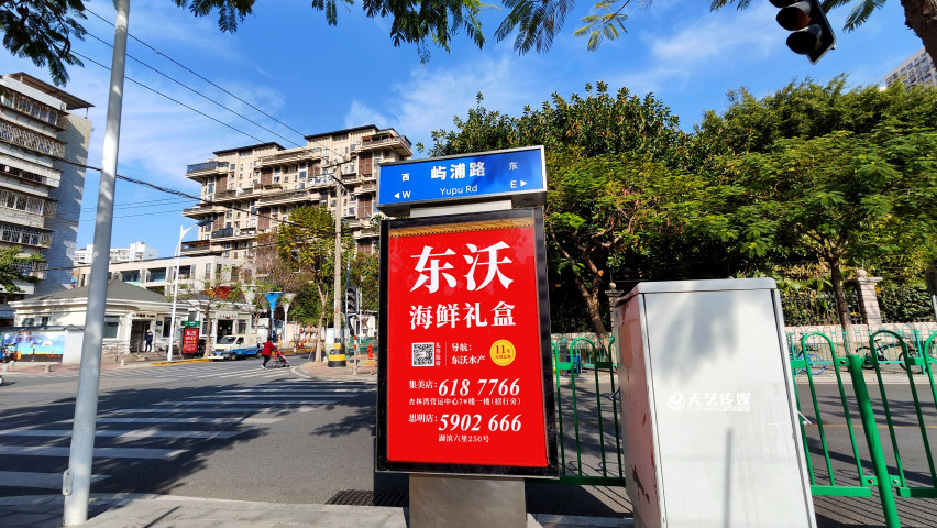 東沃作為廈門市天藝傳媒多年的合作伙伴,繼2021年9月的中秋檔后,2022年1月再次選擇城市路名牌媒體進行投放,覆蓋廈門島內幾乎所有黃金路段及生活社區(qū)出入口,全城點燃東沃春節(jié)盛宴活動。