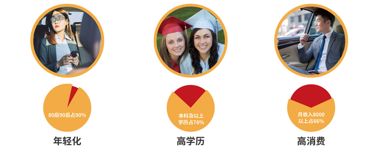 網(wǎng)約車的受眾人群呈現(xiàn)年輕化/高收入/高學(xué)歷的特點,與70%以上廣告主的目標(biāo)客戶群體高度吻合,屬于金字塔尖的消費人群。