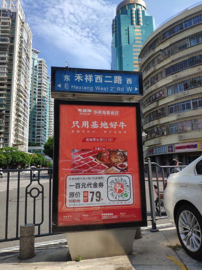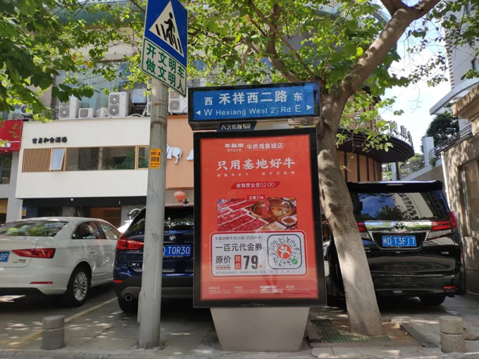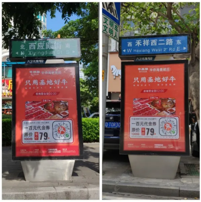 牛基地與天藝傳媒強(qiáng)強(qiáng)聯(lián)手,精準(zhǔn)宣傳將?;厝A僑海景城店附近的城市路名牌戶外媒體進(jìn)行定點(diǎn)宣傳。